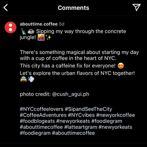 记者注意到,About Time Coffee主要依靠社交媒体来推广,对新品、优惠活动进行曝光,但是在北美社交圈(Instagram、TikTok)曝光度较小。