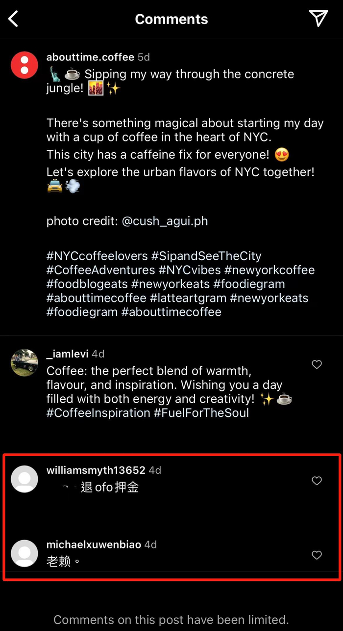 图片来源:About Time Coffee的TikTok官方账号与美国最大点评网站Yelp上的网友留言截图