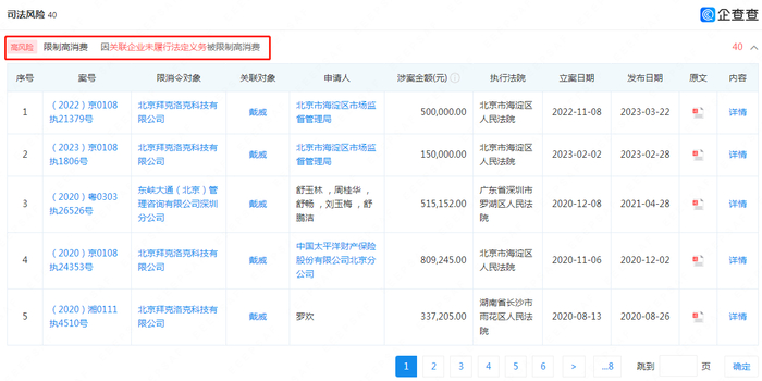 据每经记者查询,截至目前,戴威共收到40条消费限制令,最新一条发布日期为2023年2月28日。根据限制令的要求,戴威不得有乘坐飞机和G字头动车组列车等交通工具,在星级以上酒店或高尔夫球场等场所高消费,购买不动产或新建、扩建、高档装修房屋等高消费及非生活和工作必需的消费行为。