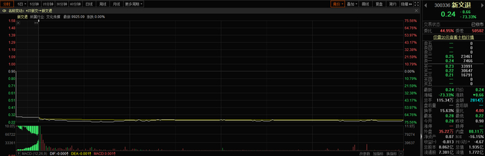 今日便有两只A股股票进入退市整理期首日,股价悉数暴跌。新文退开盘暴跌,截至收盘,股价仅报0.24元,跌幅高达73.33%。