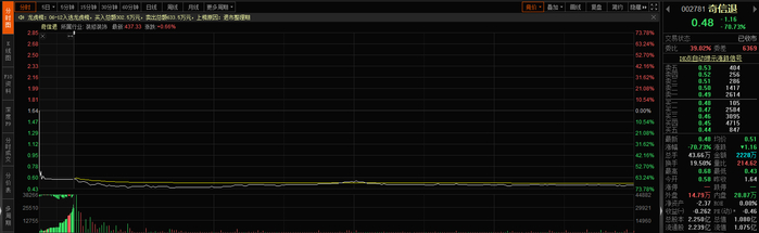 另一只股票奇信退也开盘暴跌,截至收盘,股价报0.48元,跌幅高达70.73%。