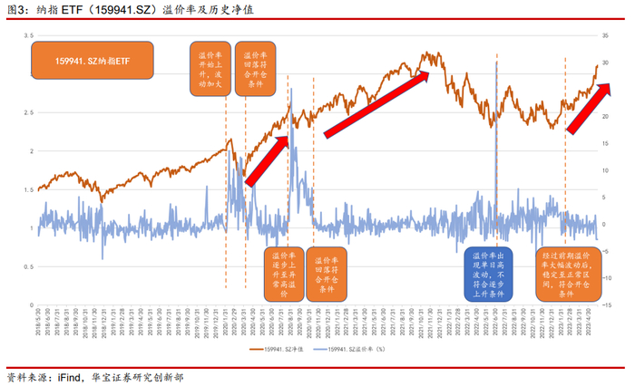 纳指ETF上,也曾出现过溢价率变动指引的波段交易机会,如2020年4月,2020年11月。