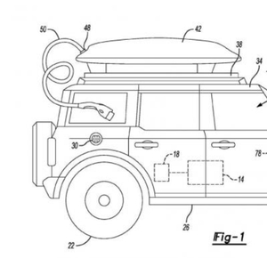 从专利内容来看,福特的这块外置电池封闭在保护壳中,同时和纯电动汽车一样配备电源线,这样就可以为车顶上的外置电池充电了。