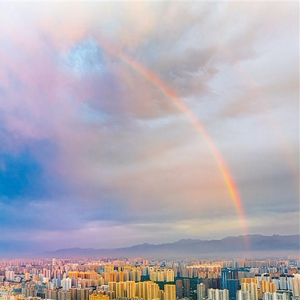6月12日傍晚,雨后的西安上空出现彩虹。 通讯员 赵军森 摄
