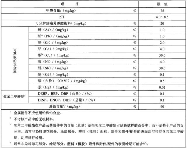 《儿童雨衣雨披》(QB/T 5539-2020)对甲醛含量、pH值、可分解致癌芳香胺染料、可萃取的重金属、邻苯二甲酸酯、总铅含量有明确的限量要求。