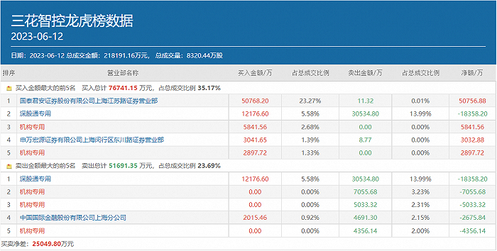 不过,当日机构资金对于该股的态度却出现了明显的分歧,两个机构专用席位出现在三花智控买方前五位中,合计买入8739.28万元,同时有三个机构专用席位出现在该股卖方前五位中,合计卖出1.64亿元。深股通专用席位当天则同时高居三花智控龙虎榜买卖双方榜首,买入金额为1.22亿元,同时卖出3.05亿元。