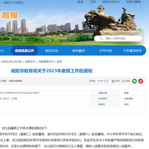 咸阳市教育局发布通知