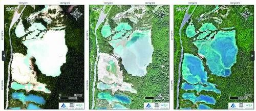 火花海作为九寨沟遗产地的重要遗产点,是研究团队的监测重点。遥感影像显示,经过灾后恢复重建,火花海溃决区钙化坝已完成修复,其水体也基本恢复,已于2020年10月重新对外开放。