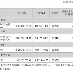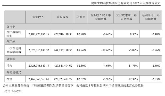 2022年报显示,虽然同比略有下滑,但健帆生物毛利率依然超过80%,净利率为35.36%。