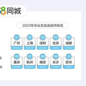 “人生的道路虽然漫长,但紧要处常常只有几步,特别是当人年轻的时候。”作家柳青的这句话,戳中了不少年轻人的心事。职场第一站,这届毕业生在就业城市选择方面有哪些变化?哪些城市薪酬更加可观?58同城发布的《2023年毕业季调研数据报告》显示,近半数毕业生就业优先考虑一线城市,95后中深圳、重庆、长沙的就业热度较高,00后毕业生则更倾向于广州、上海、北京;薪酬方面,上海、广州税前薪酬水平最高,分别达14351.9元与13150元。