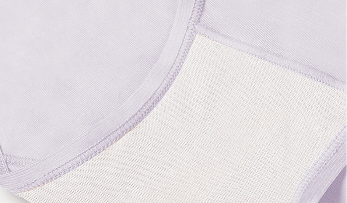 由于桑蚕丝的特殊属性,不能够依靠高温烫合到一起,所以这款内裤采用冷烫技术,将蚕丝面料贴合在内裆。
