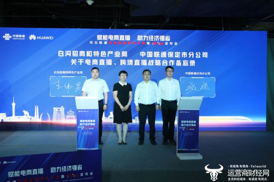 经过认真磋商积极筹措,中国联通保定市白沟分公司与白沟新城招商和特色产业局在电商直播、跨境直播方面达成合作共识,发布会现场,白沟新城招商和特色产业局局长王伟男、中国联通保定市白沟分公司总经理张强代表双方签署战略合作备忘录。未来,双方将共同促进电商直播繁荣发展,助力经济强省建设。
