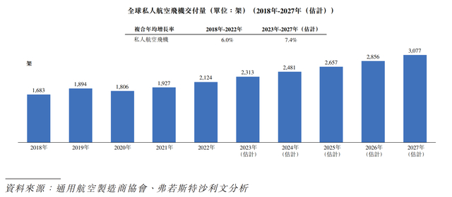 相对于通用航空飞机市场整体而言,受益于后疫情时代全球经济复苏、商业信心恢复以及全球高净值人士数量增加等数个因素,私人航空飞机(通常指购买价格在700万美元或以下的通用航空飞机市场)的交付量正在加速增长。此外,受益于针对寻求最优质的个性化和定制化航空运输解决方案的客户的高端移动服务日益普及,西锐预计私人航空市场日后将获得强劲的增长势头。
