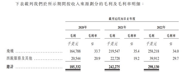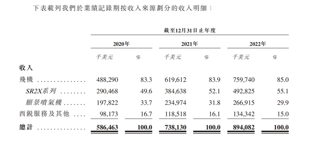 整体收入逐年增长的主要原因,招股书指出,由于推出新功能及应对更广泛的通胀压力,客户对私人航空需求增加使得飞机交付量增加、飞机价格上涨。收入增加还由于西锐公司扩张销售及服务的地域范围及增加其产品组合,促使西锐服务及其他的收入持续增长。