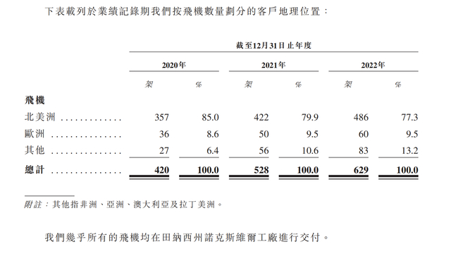 按飞机数量划分的客户地理位置,源自招股书