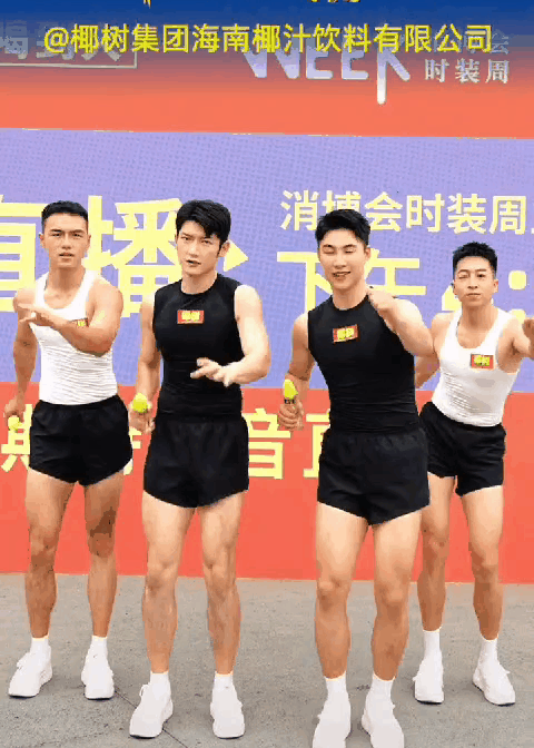这条视频出自几天前的一场椰树直播,几个男模像往常那样,穿着黑色紧身背心,在灯光下整齐划一地晃动胯胯肘。