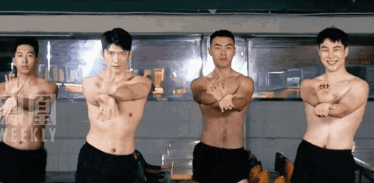 他们动作整齐划一,又保持了各自的风格——有人阳光有人坚毅。