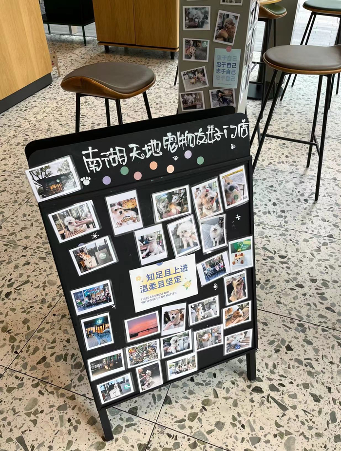 在南湖天地的星巴克宠物友好门店,小黑狗“帕瓦”正和初次见面的另一只小狗互相嗅闻。“帕瓦”的“妈妈”黄女士告诉记者,“由于许多场所禁止狗狗入内,从前,我们只能在小区周围散步,小狗很难结交‘狗朋友’。这家星巴克开业后,我们经常光顾,久而久之,小狗有了自己的‘社交圈’。”最近,田园犬主们还建了‘家长群’,一有时间就会安排‘毛孩子’来这里见面。