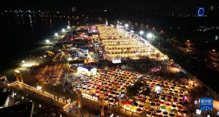 近日,海口白沙门文创市集开市,该市集融合了海南滨海文化和东南亚风情,让市民游客不出国门就能体验到原汁原味的异国风情。据悉,海口白沙门文创市集聚集超700个国内外餐饮、文创商家,集夜游、夜购、夜娱为一体,打造城市夜间经济“新引擎”。