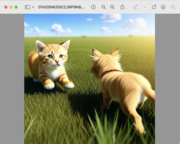 对比来看,摄影风格的图片,从毛发上面,区分出了两只猫的品种,更为写实;而3D风格图片,未能区分具体猫的品种,仅仅达到了追逐嬉戏的画面。