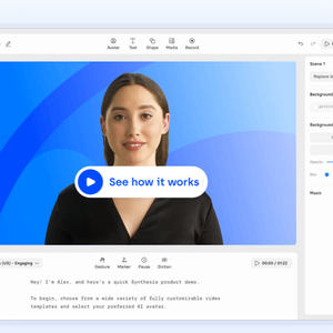 制作视频的过程相对简单,只需要提供文本稿件、选择虚拟主播化身、设置场景和背景音乐等,Synthesia就可以自动完成视频的制作,这可以帮助用户免除制作视频过程中大量的成本。