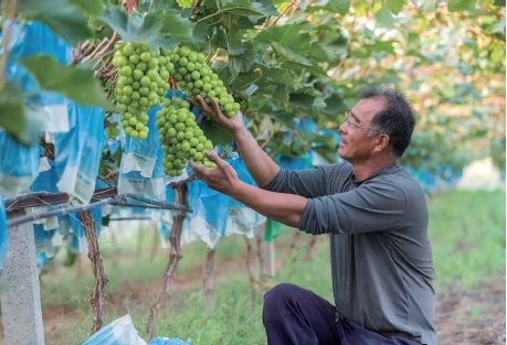 无独有偶。在水集街道茂芝场现代设施农业产业园的阳光玫瑰葡萄大棚里,果农许浩亮向记者介绍:“现在种葡萄不用操啥心,有技术、不愁卖!技术员每天都来园区指导我们为阳光玫瑰葡萄做好早期管理。”