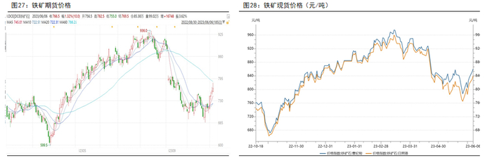 上半年期货价格先涨后跌,一季度连续上涨,原因是自去年11月以来,疫情放开+地产三支箭政策令市场从悲观情绪中亢奋起来。预期推动现货、期货价格上涨,从600元涨至936元。港口现货价格由660元涨至950元,发改委几度发文对市场做预期管理。