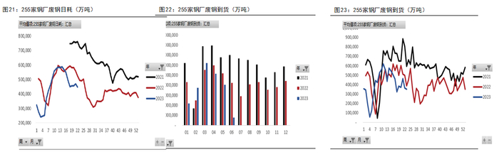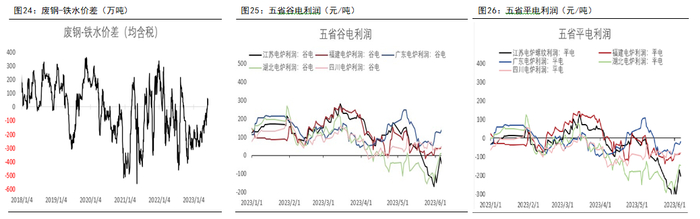 前3个月,废钢相较于铁水较有价格优势,废钢用量增加,4月后价差收窄,在跌价行情中废钢首先被放弃。利润情况看,电炉谷电利润在绝大部分时间有生产利润,电炉平电利润在4月之后转盈为亏,电炉产能利用率及螺纹产量开始下降。下半年废钢潜在供应充足,但实际供应量仍跟价格有较大关系。在成本优势不明显的情况下,钢厂减产时首先放弃的可能还是废钢用量。