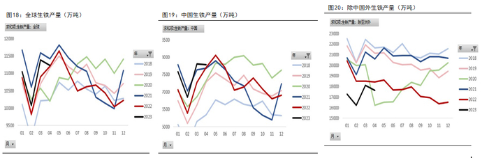 全球范围来看,仅中国、印度、韩国、俄罗斯的生铁产量今年维持正增长,除中、印所在的亚洲地区外,其他国家和地区的生铁产量处于历年低位水平。其中乌克兰是由于战争,欧洲和北美是由于去年开始能源价格过高,关停部分钢厂,土耳其是由于年初遭遇地震。