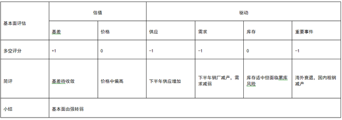 上半年库存处在合理区间,若下半年供需格局转宽松之后,港口库存将大幅累积至2021年末水平。好在今年钢厂库存始终不高,不会发生甩货主动去库存行为。
