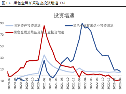 若要完成“基石计划”2025年的目标,以前两年的国产矿产量为基数,每年增速要达到10%以上。矿山从审批到出矿时间较长,从目前情况看要达成2025年短期目标有一定困难,但远期目标2030、2035年的产量目标压力较小。“基石计划”中其他两个目标:废钢产量2025短期增加目标及远期目标 或将实现。海外权益矿产量2025短期增加目标较难实现。前4个月,黑色金属采矿业投资增速6.6%,高于总的固定资产投资增速4.7%,这两年投资开支大幅增加。