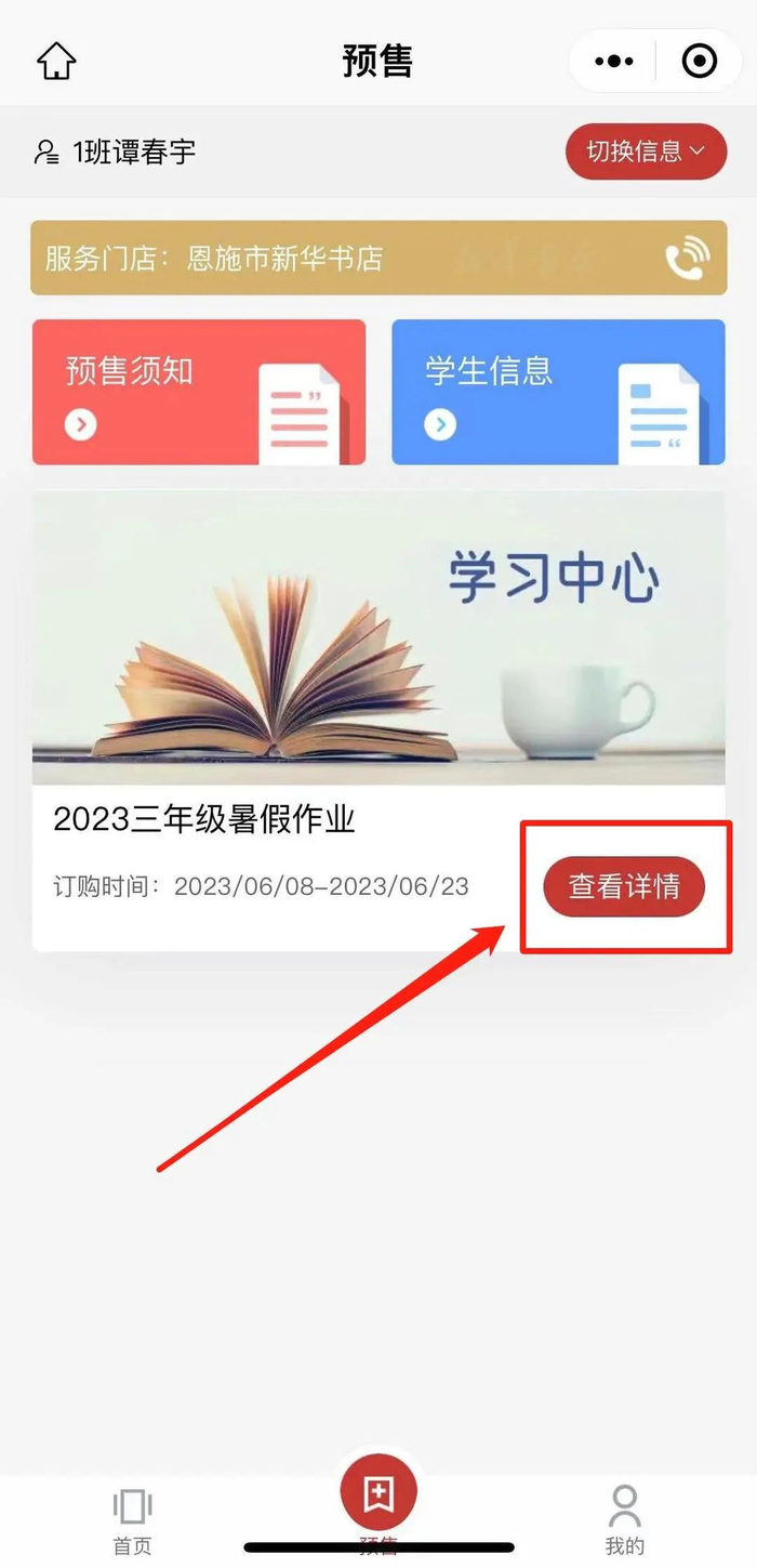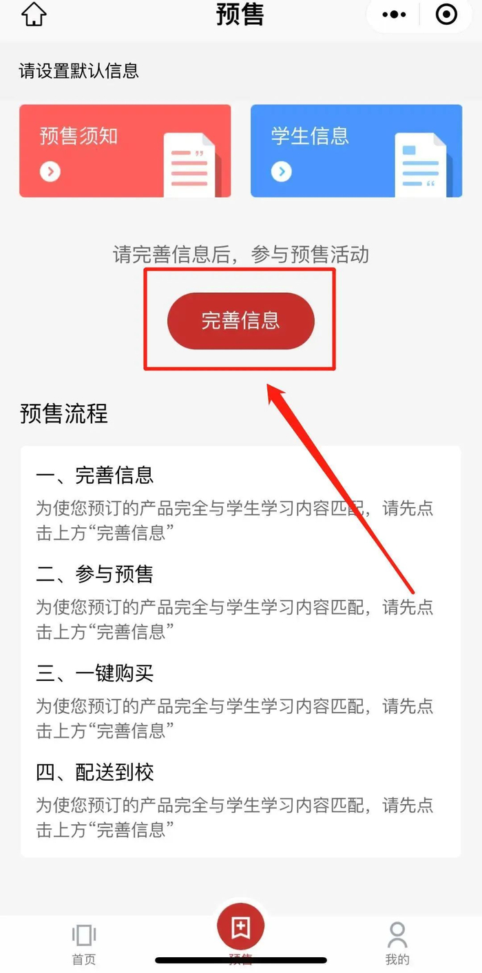 登录成功后,点击底部“预售”,进入“学生信息”页面关联学生。