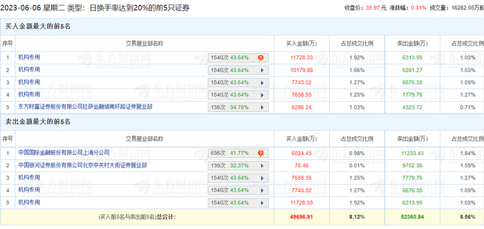 值得注意的是,从最近几天鸿博股份的龙虎榜来看,机构席位表现的较为活跃。例如6月6日龙虎榜显示,买入金额最大的前4个席位都是机构专用席位。