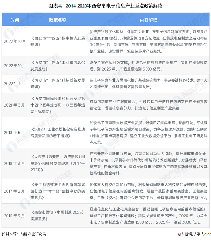 西安是我国中西部发展的核心城市之一,亦是我国电子信息产业的领军城市,“十一五”期间,电子信息产业就被西安市政府认定为重点发展的高新技术产业之一;2020年,电子信息产业正式被列入西安市六大支柱产业之中;2021年,西安市明确提出了电子信息产业2025年的发展目标;2023年,截至6月,西安市共有3条相关政策公布。