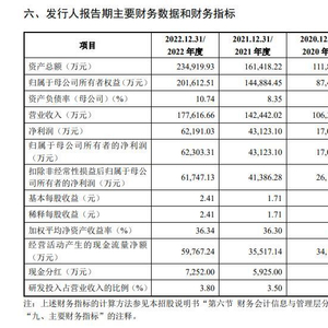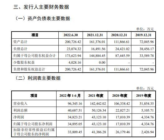 从总资产来看,公司招股材料披露2019年~2022年总资产为7.20亿元、11.19亿元、16.14亿元、23.49亿元,闰土股份披露巍华新材2019年~2022年资产合计为4.59亿元、11.24亿元、16.15亿元、23.49亿元,2019年数据差异较大。