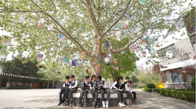 学校努力把最先进的阅读理念和最优质的阅读资源辐射到家庭和社区的同时,还赠书新疆八一爱民学校,走进河北狼牙山红军学校同上一堂思政读书课,与内蒙古南台子小学互相推荐书籍,实现同一片蓝天下共同阅读一本书。
