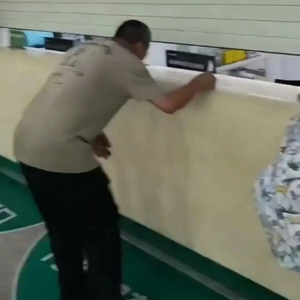 视频显示,该医院药房的取药窗口帘子被放下,留有约20厘米宽的缝隙,患者站着看不到药房内部,需弯腰低头与工作人员沟通。