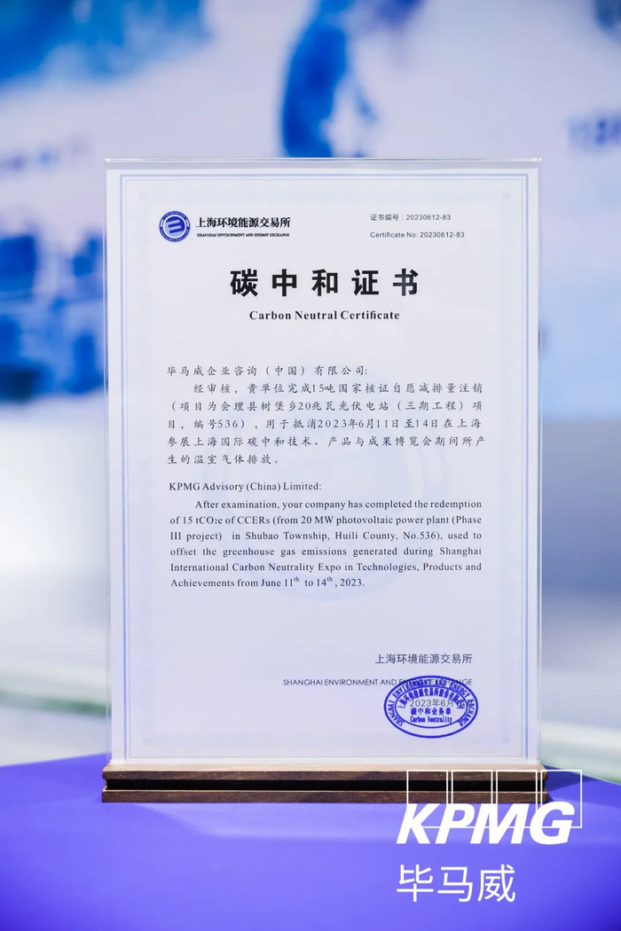 上海国际碳中和博览会毕马威中国碳中和颁证仪式