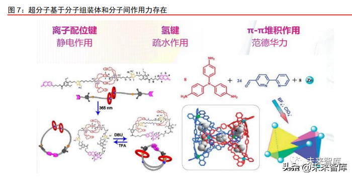 超分子化学是研究两种以上的化学物种通过分子间力相互作用缔结而成的具有特定 结构和功能的超分子体系的科学。相比分子化学基于共价键存在,超分子化学的存在则基 于分子间作用力,比如氢键作用、静电作用、疏水作用、π-π键作用等,即两个或两个以 上的分子以非共价键弱相互作用力形成复杂、有序且具有特定功能的分子聚集体。