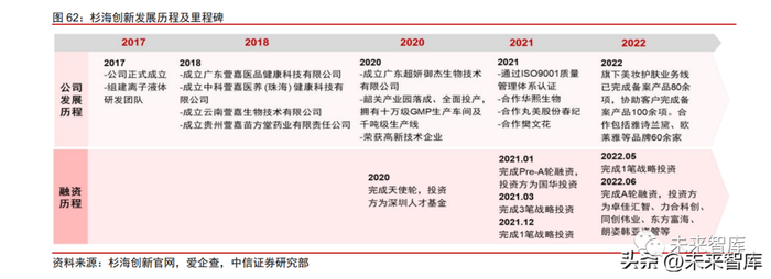 瑞德林成立于 2017 年,是一家以生物合成技术为核心,专注以多学科交叉应用技术 平台为依托,研发、生产功能性健康原料为主的高新技术企业。公司打造以氨基酸、核苷 酸、糖为单体的“生命分子”商业化生产和业务解决方案,产品应用覆盖功效护肤、生物 医药、营养健康、动物保健、绿色农业、生物材料六大领域。2019Q1,公司完成天使轮 融资;2020Q4 完成 A 轮融资;2021Q4 完成超 2 亿元 A+/A++轮融资;2022Q3 完成 B1 轮融资。