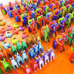 瓦哈卡拥有丰富的土著文化历史,也因此拥有该国最有趣和最具活力的民间艺术,这里的民间艺术既强调实用又兼具华丽,许多工匠本身就是艺术家,即便是一叠纸板、一根木头,经他们之手创作、打磨和绘画后都会变成熠熠生辉的艺术品。将真实动物和奇幻生物的身体部位结合、绘上鲜艳色彩和复杂图案的木雕阿莱布里赫就诞生在这里。