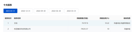 截至2023年第一季度末,林芝腾讯科技有限公司持有10%的世纪华通股份。