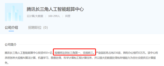 而腾讯长三角人工智能超算中心投资450+亿元,规模将达到长三角第一,全国前三。该中心将承担各种大规模AI算法计算、机器学习、图像处理、科学计算和工程计算任务,并以强大的数据处理和存储能力,为全社会提供云计算服务。