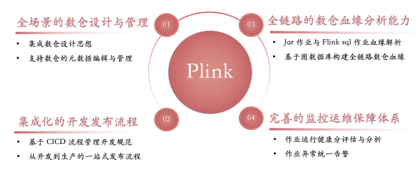 Plink平台基于全场景的数仓设计思想,制定了一套集成化的作业开发发布流程,并打通了全链路数仓血缘图谱,同时也构建了完善的作业指标监控体系,共同保障作业规范、平稳、健康运行。