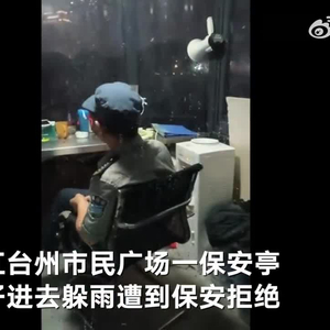 【#家长带孩子保安亭求避雨遭拒#官方:双方和解涉事保安调离岗位】6月14日,一段家长抱着小孩雨天蹲在保安岗亭外用纸箱躲雨视频引热议。当事人王先生告诉@新京报我们视频,事发13日晚,他和孩子回家时突遇暴雨,路过浙江台州市民广场一保安亭想带孩子进去躲雨,遭到保安拒绝。王先生认为保安过于刻板没有爱心,故拍下视频想反映一下情况。14日晚,台州椒江区相关部门回应称,涉事双方因躲雨问题产生口角,在当地公安机关组织下,双方已相互谅解。涉事保安已被公司批评教育并调离市民广场岗位。(记者:俞金旻制作:罗伟伟运营:吴宇菲)