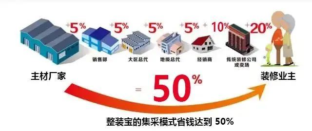 举个例子,以80×80厘米的通体瓷砖为例,出厂价大概20元/片,但是终端销售60~120元/片,但省掉中间环节,在这里装修仅需30元/片的成本价;