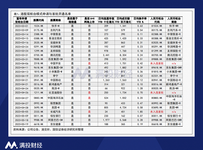 然而从目前的方案来看,港股通投资者暂时还无法参与到双柜台交易中,无论南向还是北向,都没有实现标的互换的渠道,其中涉及估值溢出、价差过大的问题,以及两地股权可能不同的问题。同样的情况在港股通交易中也存在,目前二次上市标的尚不能纳入港股通,即便未来此类标的可以使用人民币交易,是否能纳入港股通尚不可知。