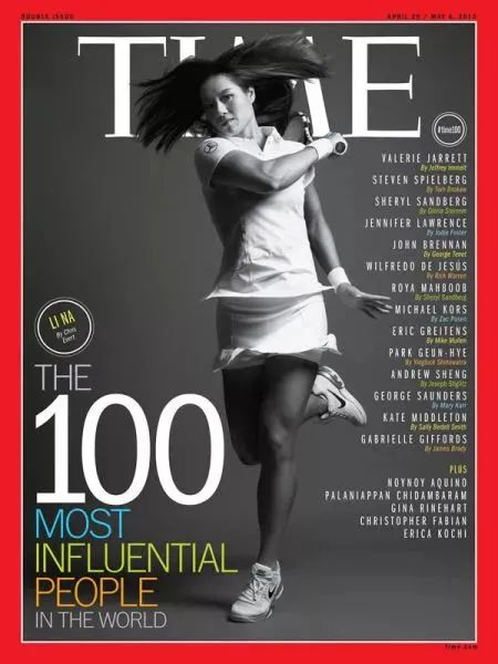 2013年李娜入围美国《时代》杂志评选的世界最具影响力100人,她作为重点推荐的人物登上了封面,是亚洲网球运动员的第一次。