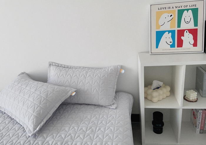 它睡着舒服,打理起来也方便。不用的时候,折叠起来还没一条薄毯占地,特别方便收纳。