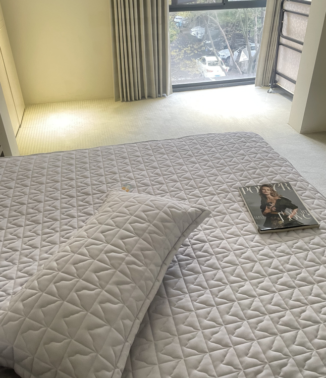 它是那种,躺上去就能感受到冰爽丝滑的触感,就像细腻嫩滑的布丁般,让人一摸就爱上的凉席。